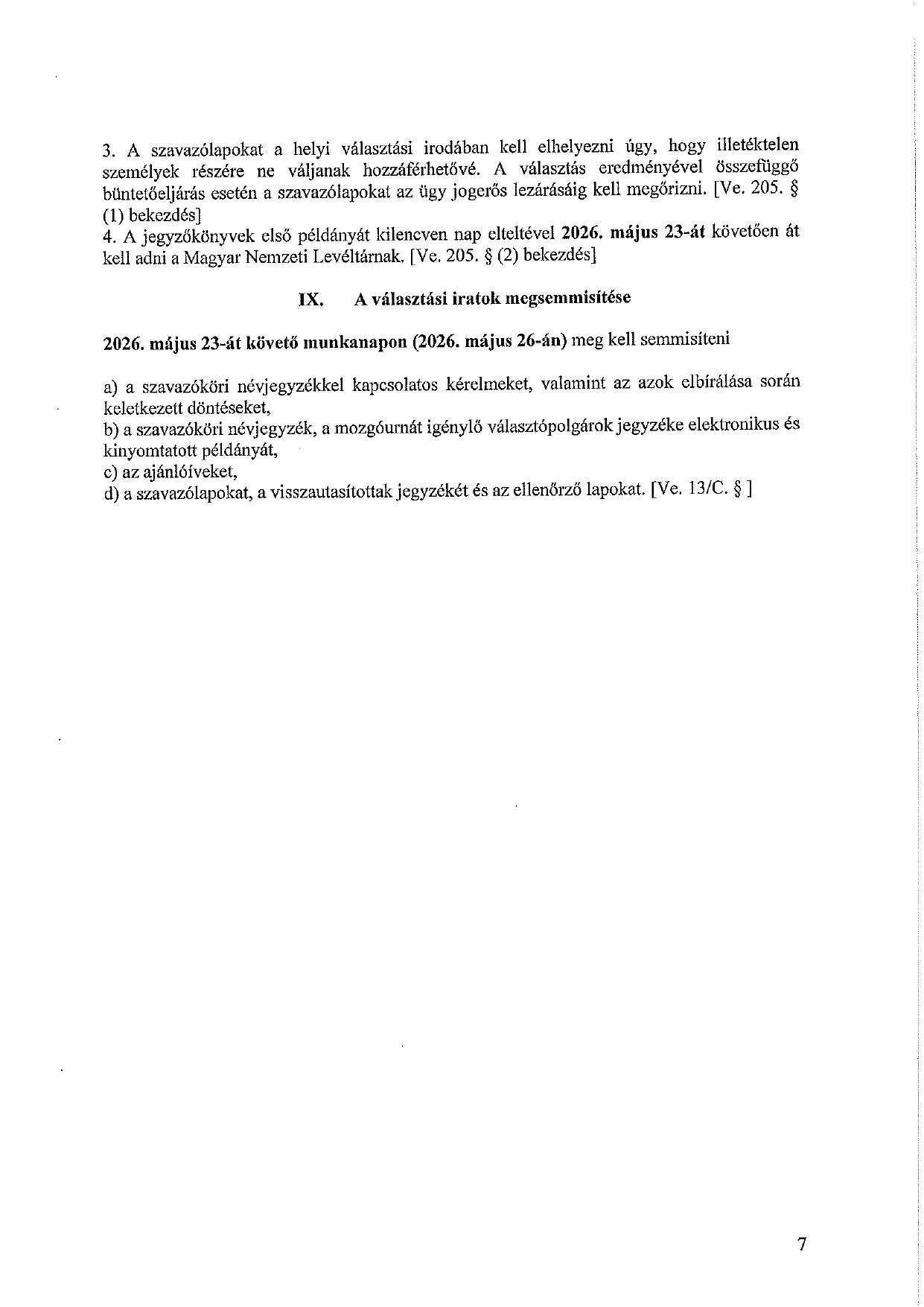 A Képviselő-testület felkéri a jegyzőt az időközi választással kapcsolatos feladatok elvégzésére.