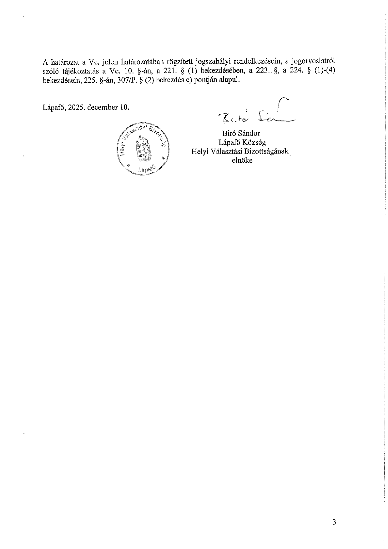 L á p a f ő Község Önkormányzata Képviselő-testületének 2025. november 25. napján