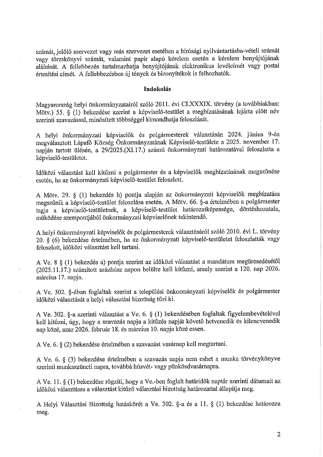 L á p a f ő Község Önkormányzata Képviselő-testületének 2025. november 17. napján (hétfő) 17.00 órai kezdettel tartandó rendkívüli ülésére.