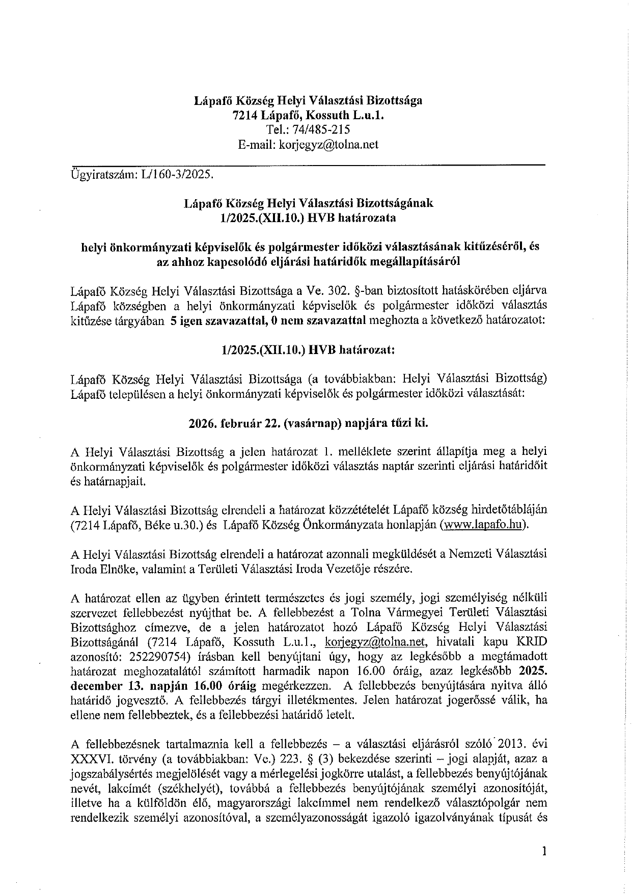 L á p a f ő Község Önkormányzata Képviselő-testületének 2025. december 12. napján