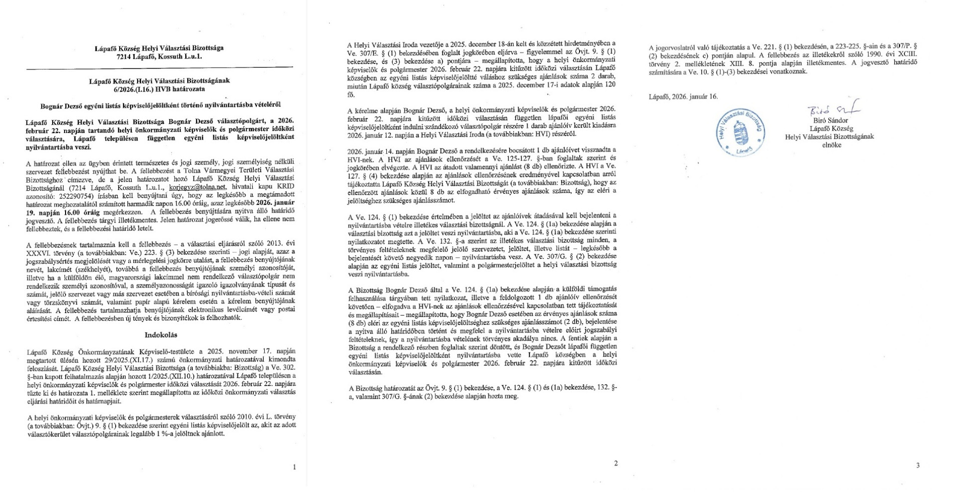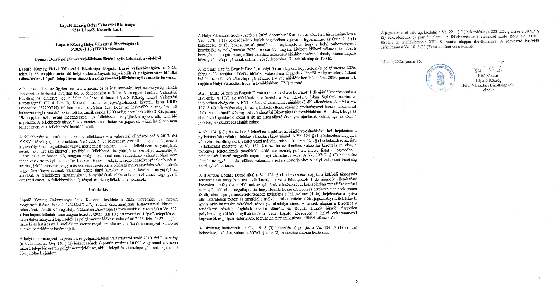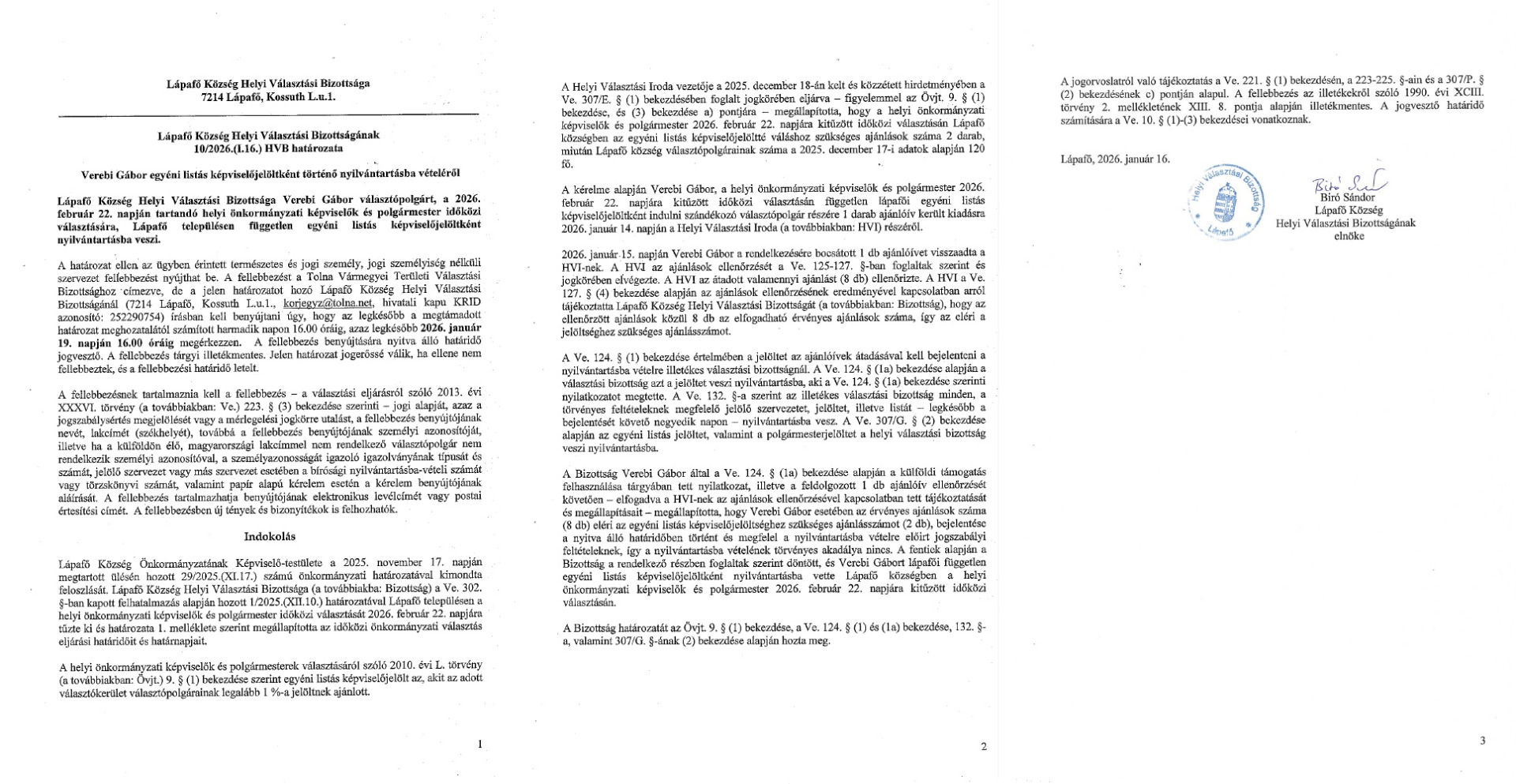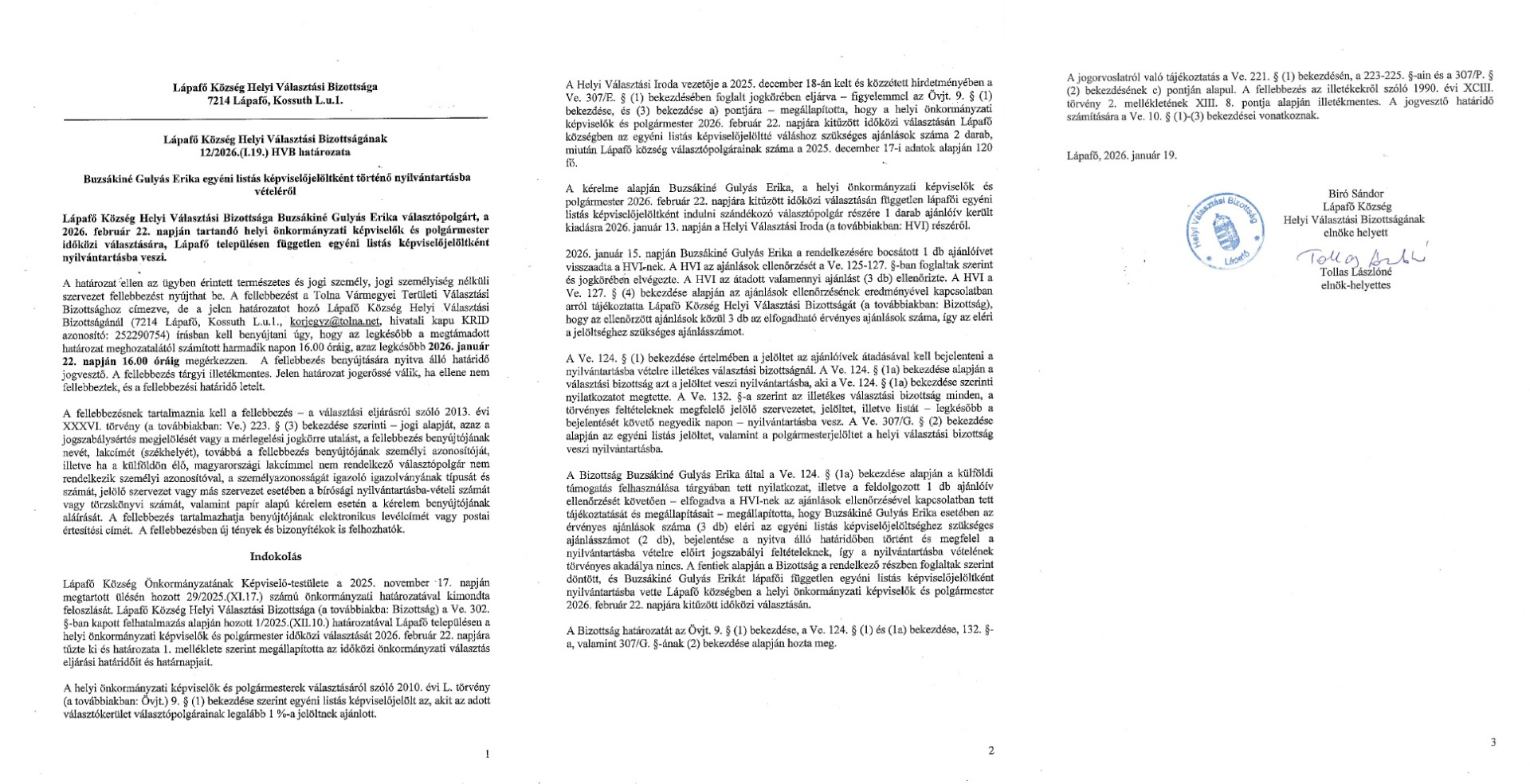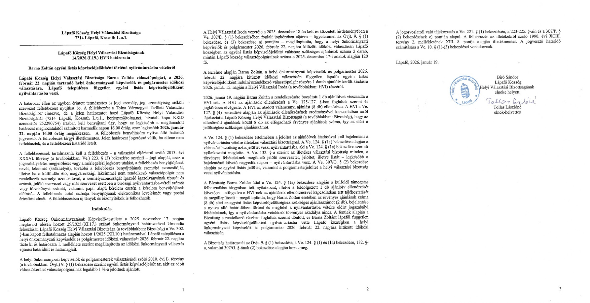 15/2026.(I.19) HVB határozat